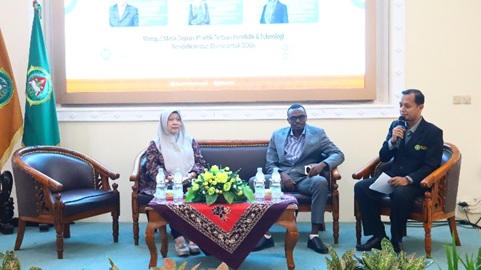 Kegiatan ini menghadirkan narasumber internasional yang berkompeten di bidang pendidikan dan teknologi. Prof. Dr. Deshinta Arrova Dewi dari INTI International University menyampaikan materi bertajuk “Belajar Lebih Cerdas: Bagaimana AI Mengubah Cara Belajar”, yang mengupas peran kecerdasan buatan dalam mentransformasi proses pembelajaran menjadi lebih efektif dan adaptif. Sementara itu, Celestine Havyarimana, Bio.Sc., M.Sc. dari University of Burundi memaparkan materi “Education, Technology, and the Sustainable Development Goals: Environmental Perspective”, yang menekankan pentingnya sinergi antara pendidikan, teknologi, dan keberlanjutan lingkungan dalam mendukung pencapaian SDGs.